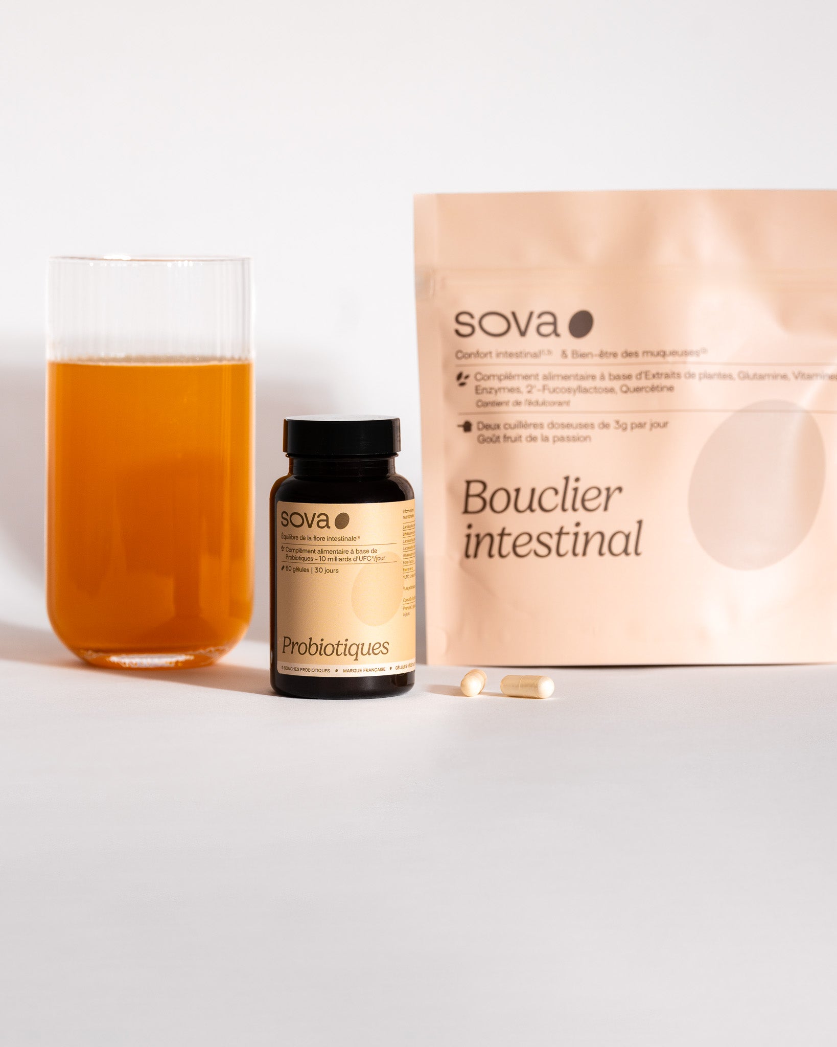Chez SOVA, nous te proposons deux compléments efficaces pour améliorer ton confort intestinal :