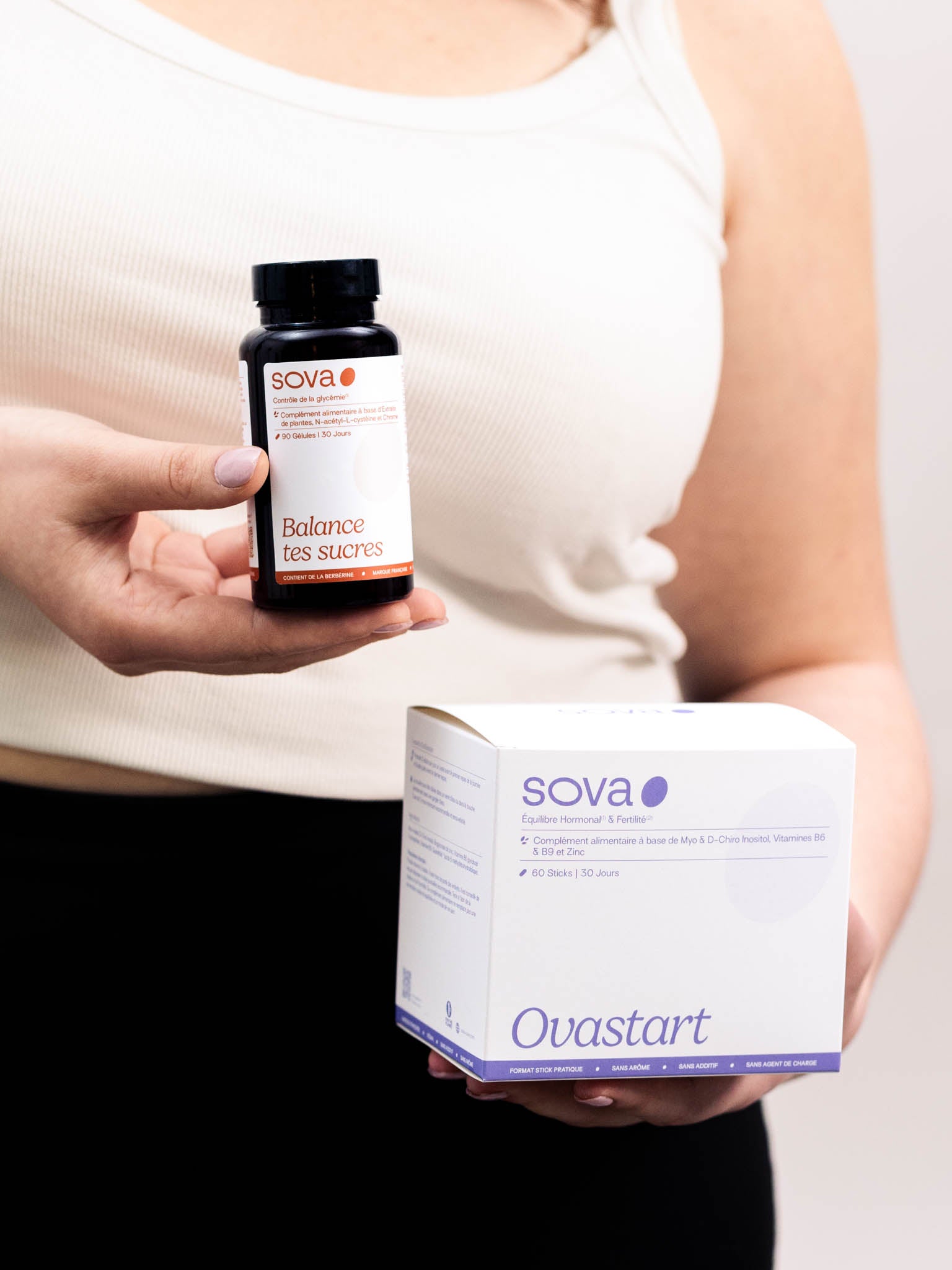 Ovastart et Balance tes sucres sont des compléments alimentaires sans hormones, il est donc possible de commencer votre cure à n'importe quel moment du cycle ! Le tout, c'est d'être assidu.e sur la prise de votre cure et de la prendre tous les jours, pendant 3 mois.
