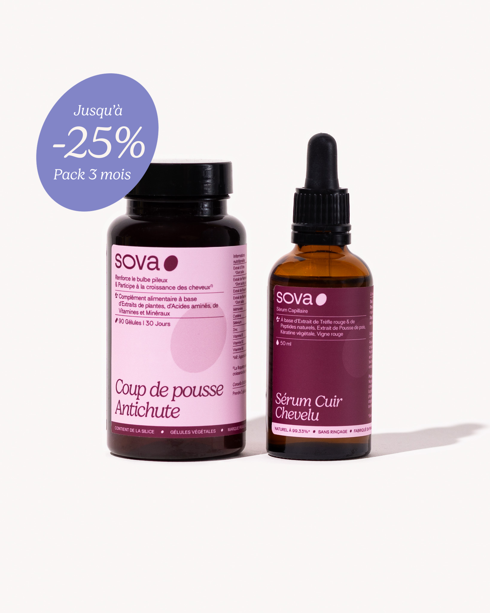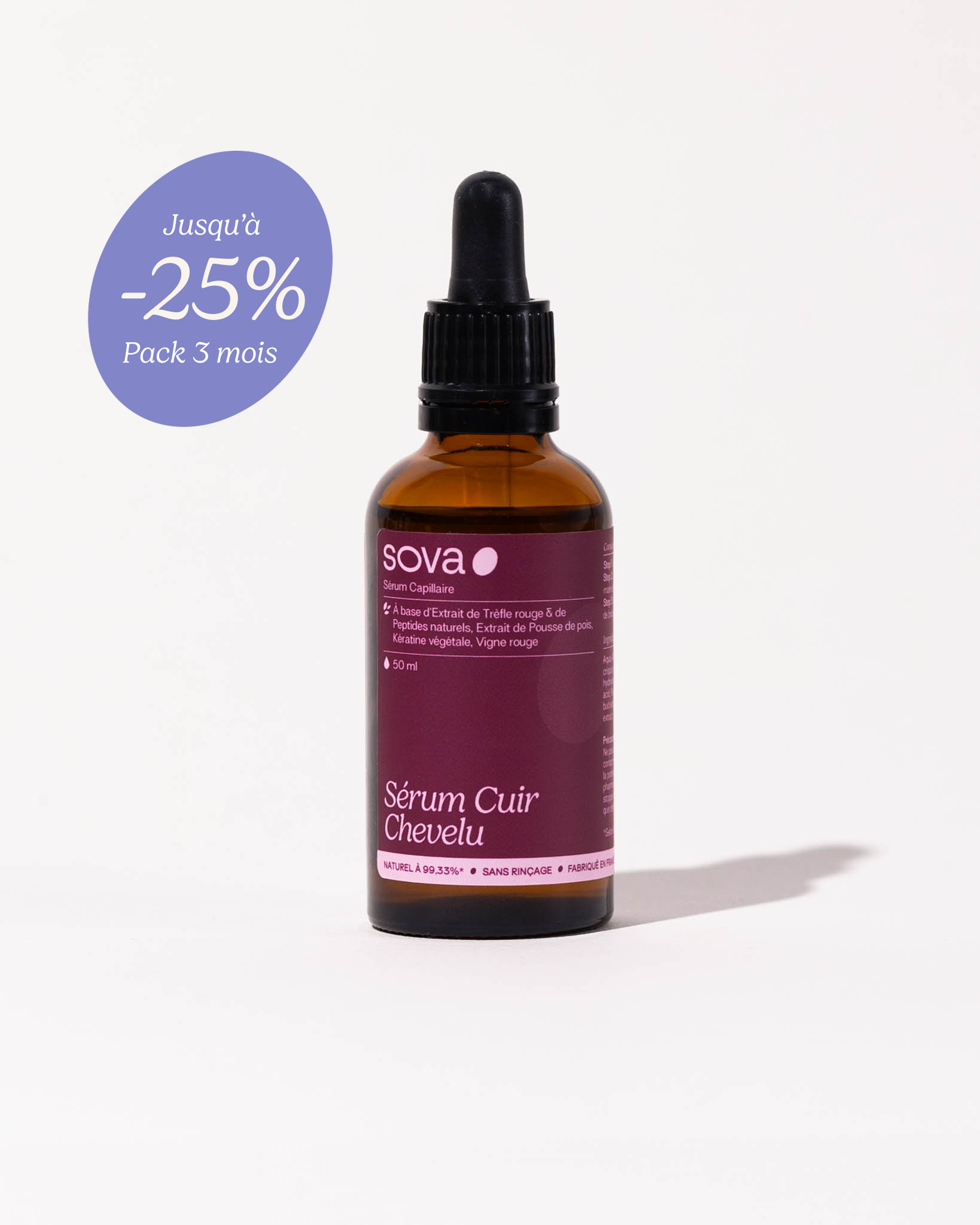 Chez SOVA, nous vous avons concocté un sérum pour la perte de cheveux liée à la DHT !